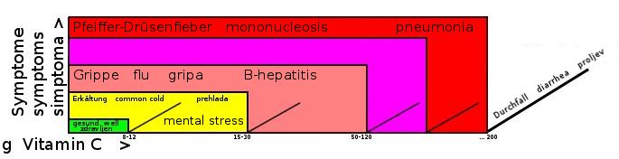 He stated, “The astonishing thing is that the same person — the patient who when well gets diarrhea on say, 12 GRAMS — when ill with a MODERATE COLD CAN TAKE 30 to 60 GRAMS WITHOUT DIARRHEA; with a BAD COLD or the FLU, 100 GRAMS, sometimes even 150 GRAMS, and with VIRAL DISEASES SUCH AS MONONUCLEOSIS OR VIRAL PNEUMONIA I’VE USED IN EXCESS OF 200 GRAMS A DAY WITHOUT ITS PRODUCING DIARRHEA. ... In some cases the body evidently NEEDS that much, albeit for only a short time. With mononucleosis or viral pneumonia, during the first couple of days of the disease we sometimes see a need for that half pound of the vitamin ... Essentially, the sicker you are, the more you can take, and taking enough – AND THAT’S IMPORTANT – seems to detoxify you. You get well quickly. And as you do, you find that you can tolerate less and less ascorbic acid (Vitamin C) until you go back to normal when you are well.